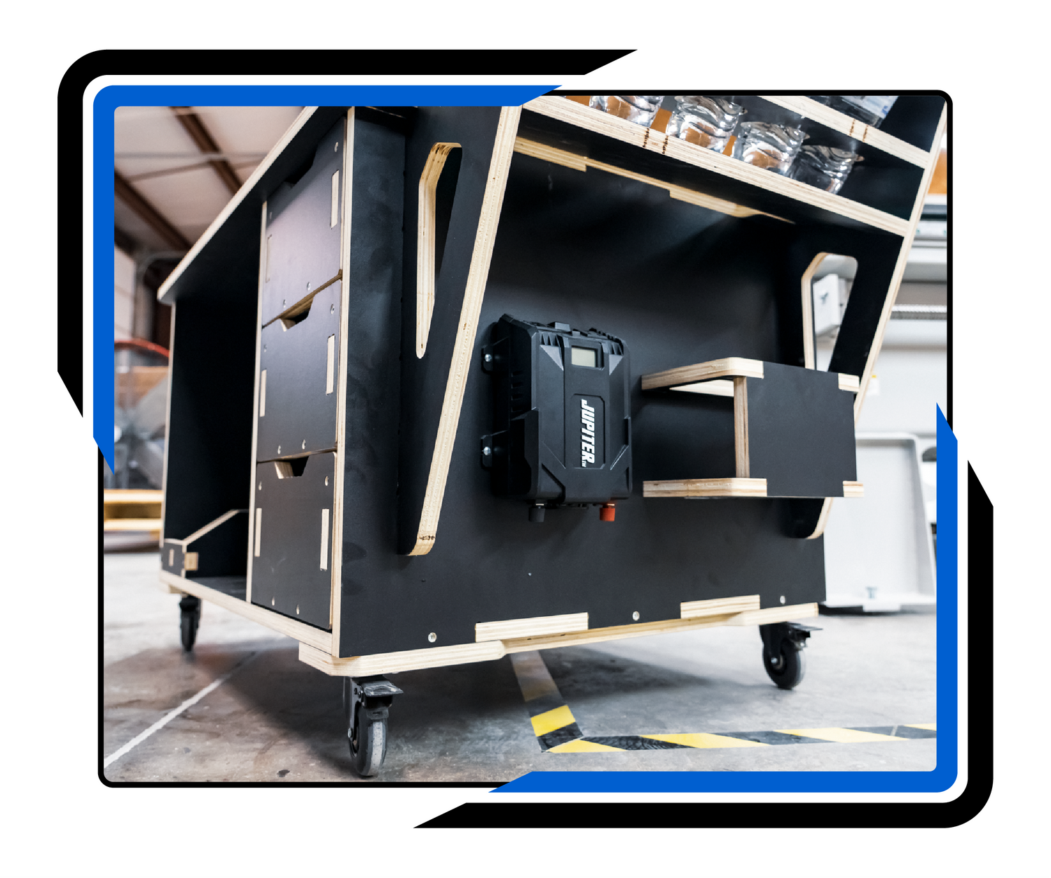 Dedicated battery storage safely houses competition batteries, keeping them protected and ready for use.